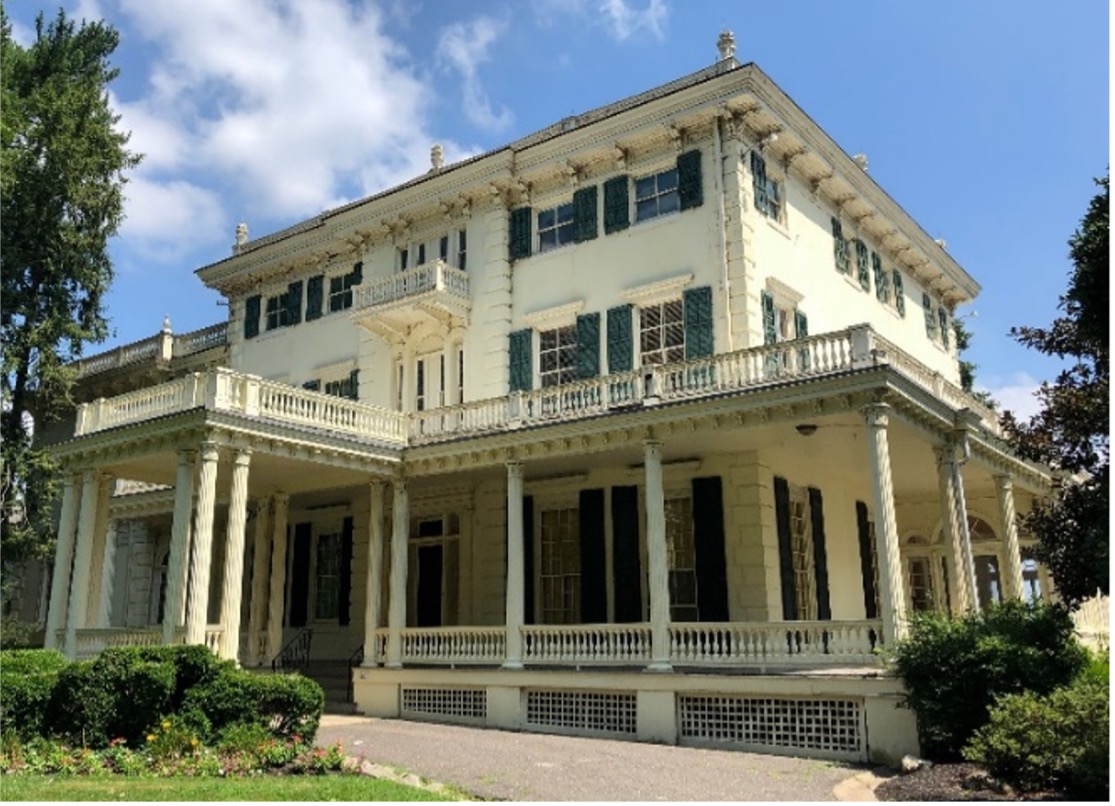 Mansion owned by the City of Philadelphia was constructed in 1850 and listed on the National Register of Historic Places. The 18-acre site located at the confluence of Poquessing Creek and the Delaware River includes a mansion, carriage house, boathouse, cottage, garden house, gatehouse, water tower, and assorted trees and gardens.